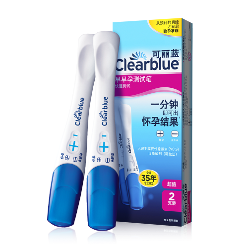 (1)电子验孕笔(银色):唯一能显示怀孕周数的验孕笔。采用双传感器技术,不仅以中文文字显示“怀孕”或“未怀孕”,更能进一步提示孕周(1-2周、2-3周、3周以上)。灵敏度高,最早可提前4天检测(预计月经期前4天),3分钟内数码屏清晰显示结果,且结果可保留24小时,方便记录。